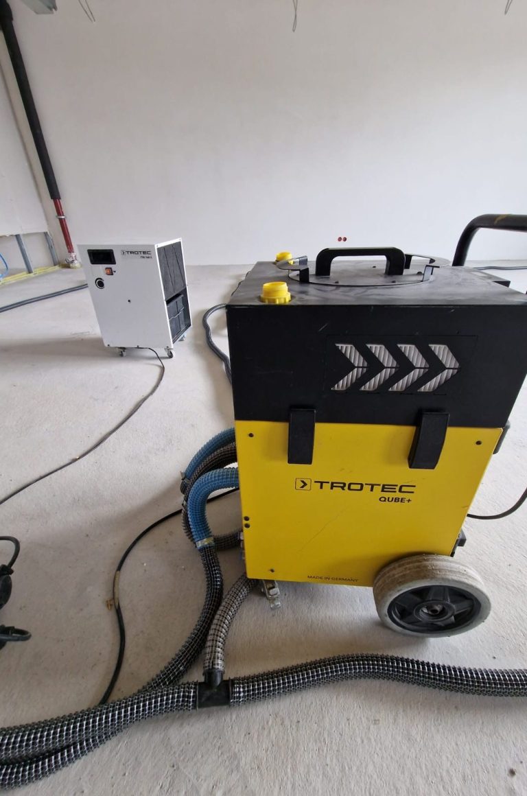 Dank unserer Erfahrung im Innenausbau wissen wir, wie wichtig ein trockener Untergrund für die Qualität nachfolgender Arbeiten ist. Deshalb setzen wir auf eine schnelle, energieeffiziente und schonende Trocknung, um Zeitverzögerungen auf Ihrer Baustelle zu vermeiden.